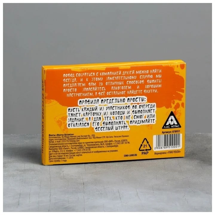 Купить игра для компании "фанты буханты" 20 карт от 100 руб. с доставкой до пункта выдачи в Агидели. Интернет магазин ДекаМаркет. Оплата при получении.